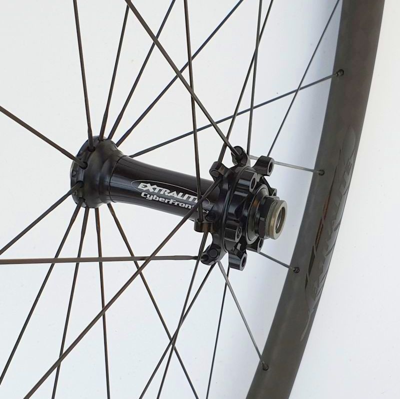 Lacing: 24+24 black HyperLite extreme-butted aero-bladed spokes, black Ergal DSN external nipples.