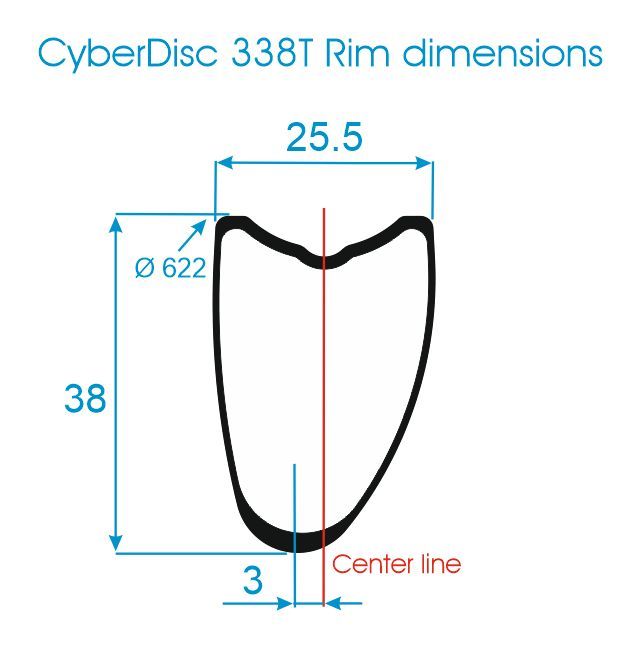 25x38mm tubular rims featuring 3mm offset profile, custom built for us here in Italy.